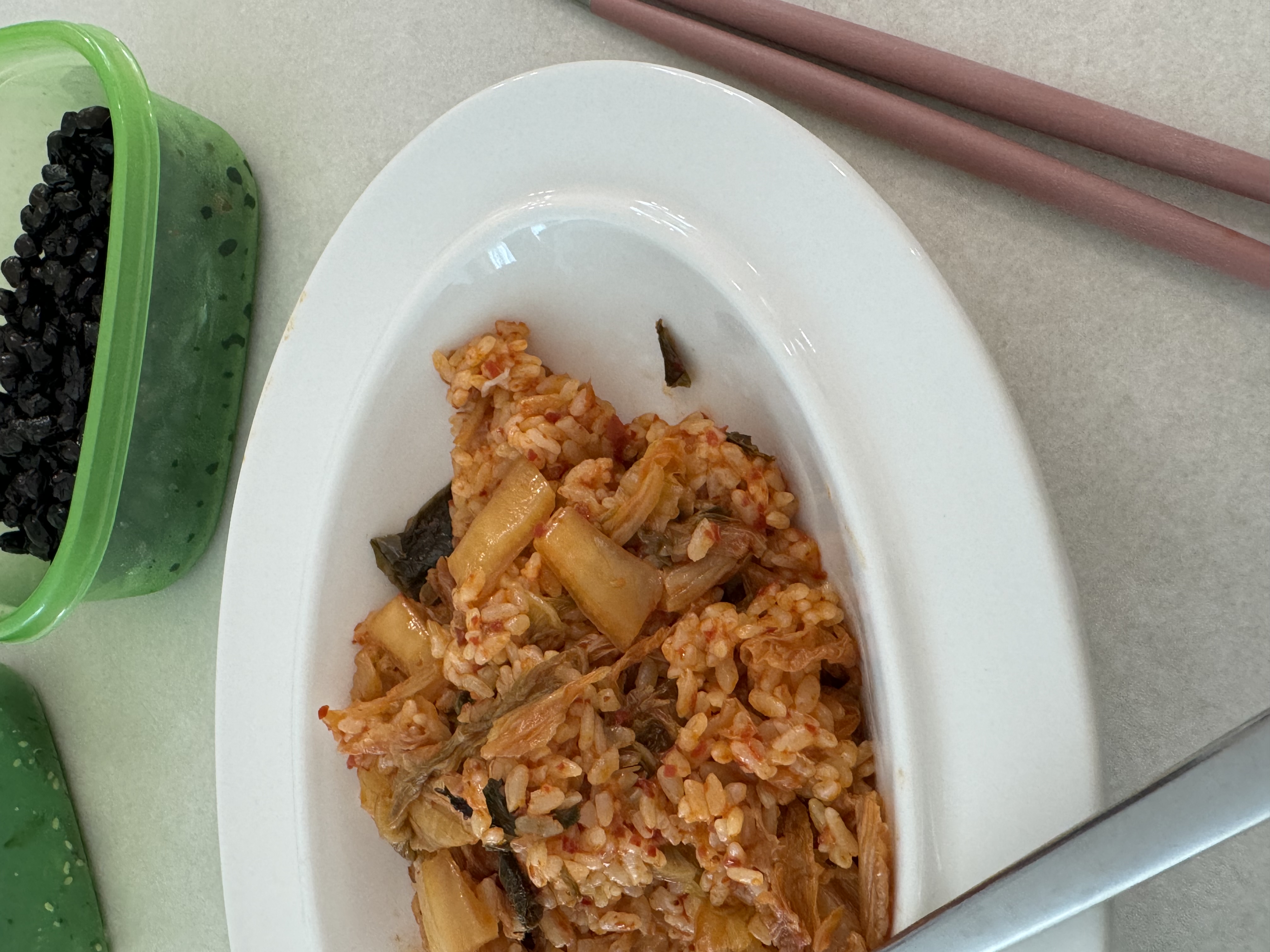 선생님이 김치가 맛있다며 김치볶음밥 만들어주셨어요 ! 꿀맛